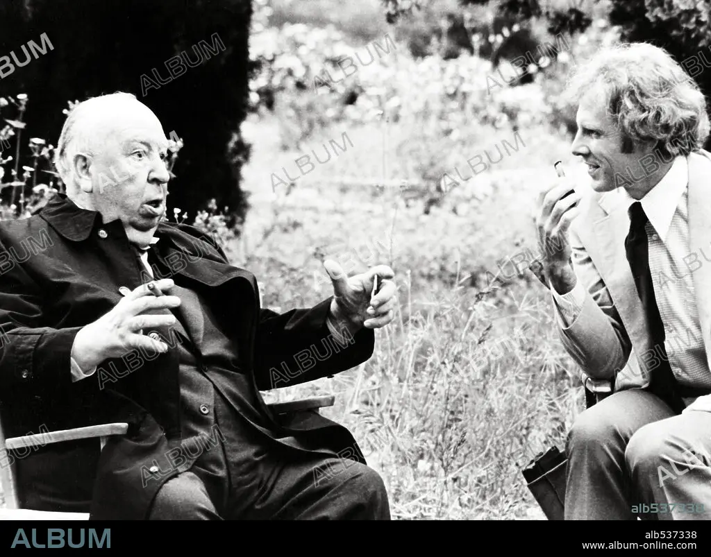 ALFRED HITCHCOCK y BRUCE DERN en LA TRAMA, 1976 (FAMILY PLOT), dirigida por ALFRED HITCHCOCK. Copyright UNIVERSAL PICTURES.