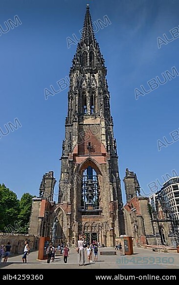 Memorial, church ruin of the main church St. Nikolai, destruction during the Second World War, Hop market, Hamburg, Germany