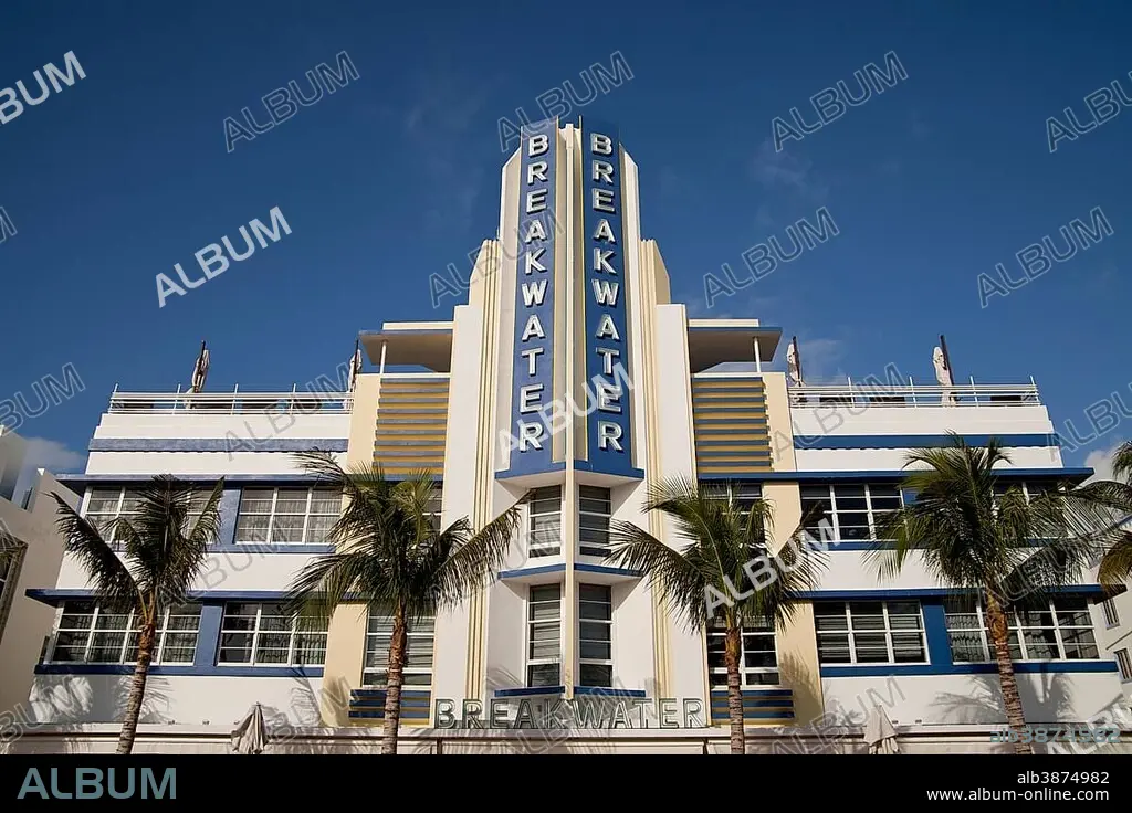 Breakwater Art Deco hotel on famous Ocean Drive in South Beach, Miami Beach, Florida, USA, North America.