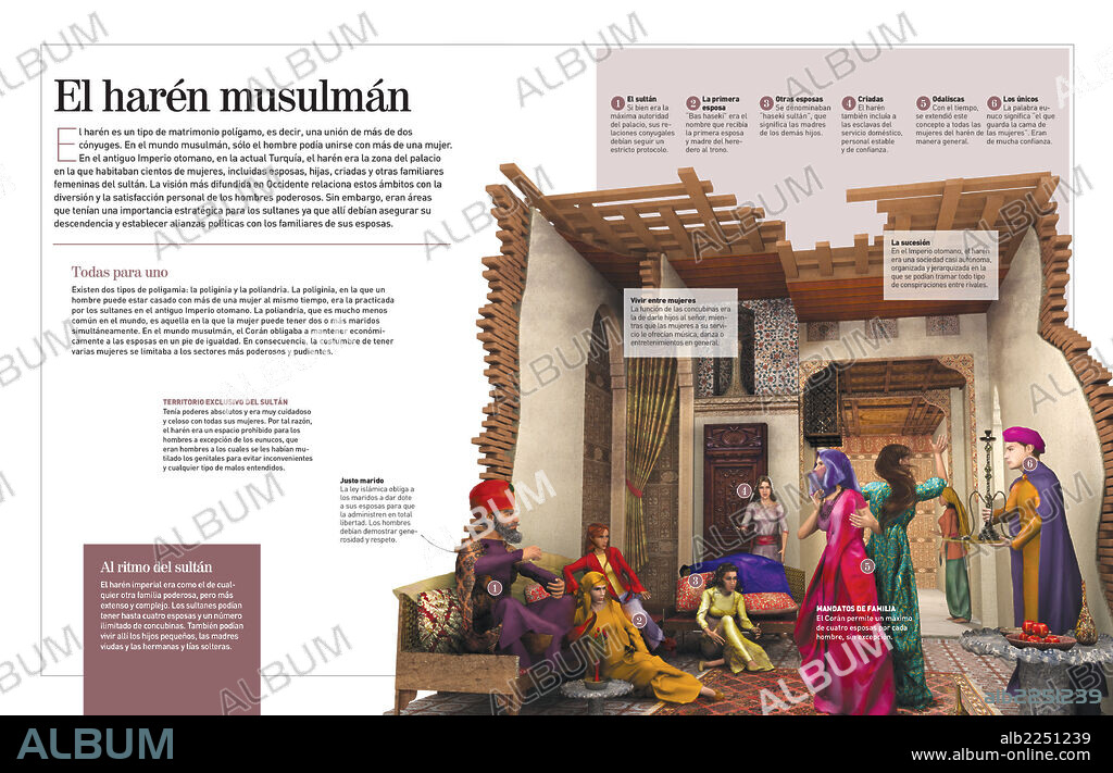 Infografía del harén musulmán (1300), que entre los musulmanes es el conjunto de todas las mujeres que viven bajo la dependencia del sultán o jefe de familia.