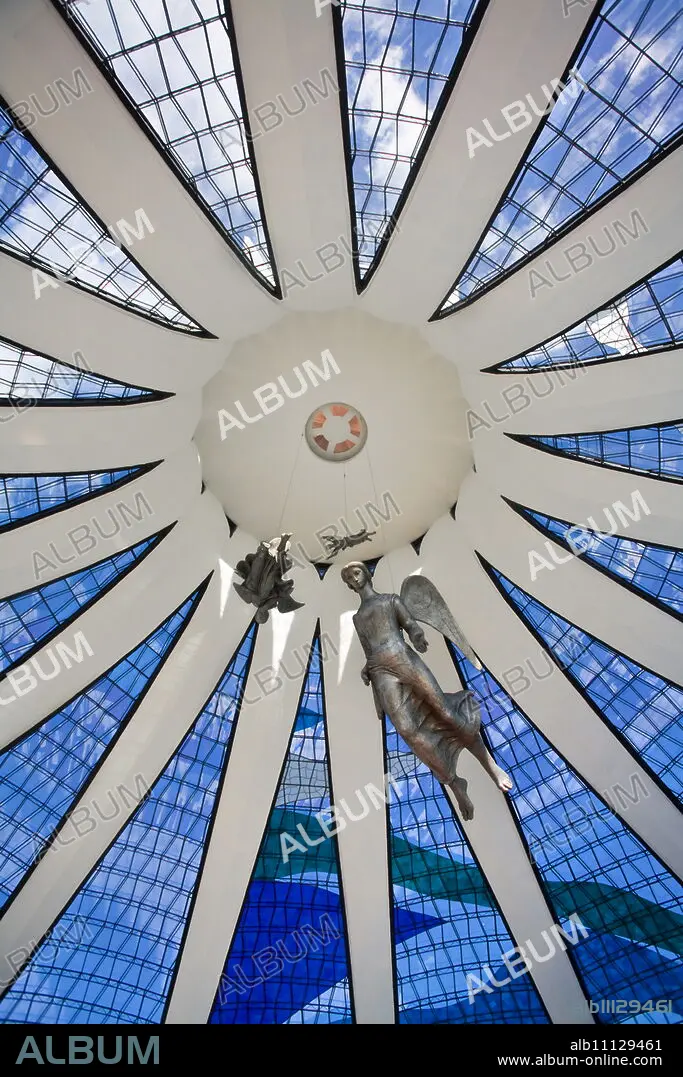 Interior of Metropolitan Cathedral of Brasilia designed by architect Oscar Niemeyer, Brasilia, Brazil, South America