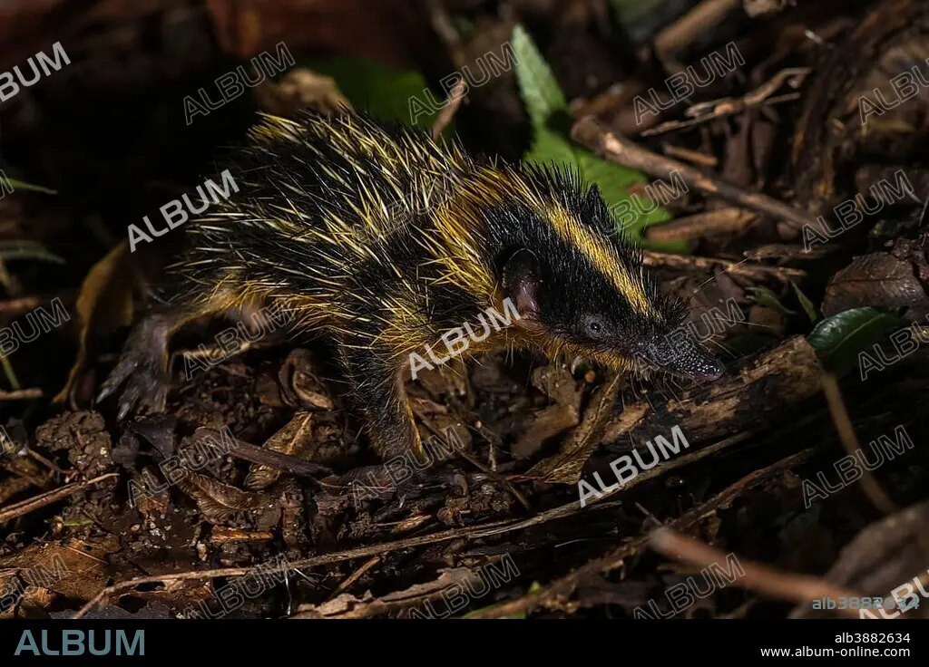 Lowland streaked tenrec (Hemicentetes semispinosus), Mandraka Park, Madagascar, Africa.