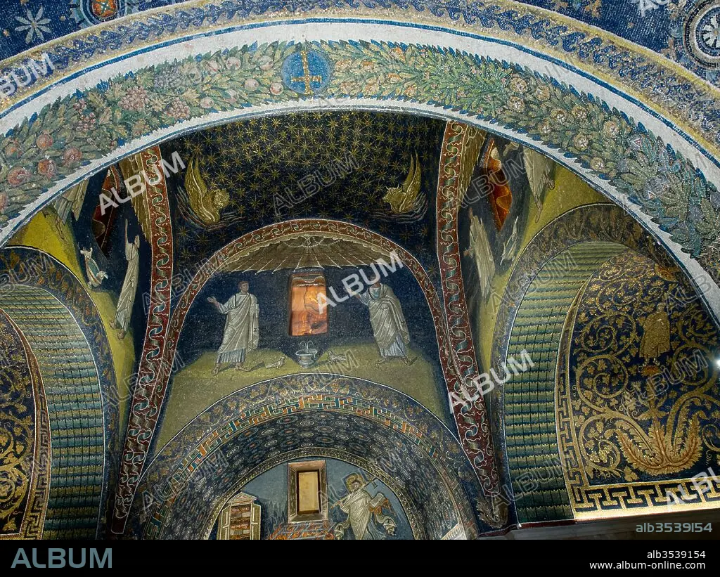Descripción: Mosaicos en el interior del Mausoleo de Gala Placidia, Siglo V, Rávena, Emilia-Romagna, Italia