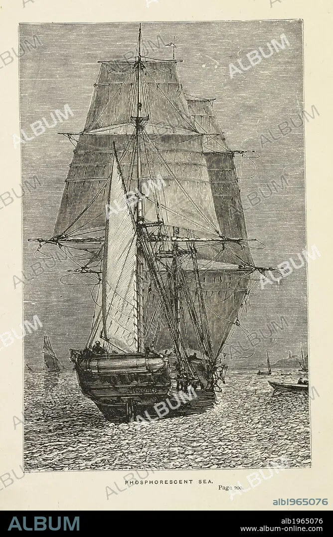 Frontispice of HMS Beagle, the ship which carried Darwin on his research voyages of the 19th century, in sail on a phosphorescent sea. From the Journals of Charles Darwin. Journal of Researches into the Natural History and Geology of the Countries visited during the Voyage of H.M.S. Beagle round the World. London, 1891. Frontispiece from Journal of Researches into the Natural History and Geology of the Countries visited during the Voyage of H.M.S. Beagle round the World, etc. [With plates]. Source: X.319/3182 frontispiece. Language: English.