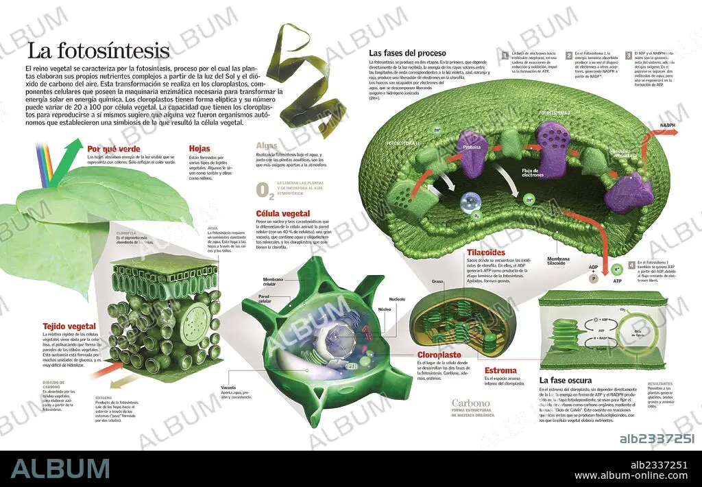 Infografía del proceso de fotosíntesis en las partes interiores de la hoja.