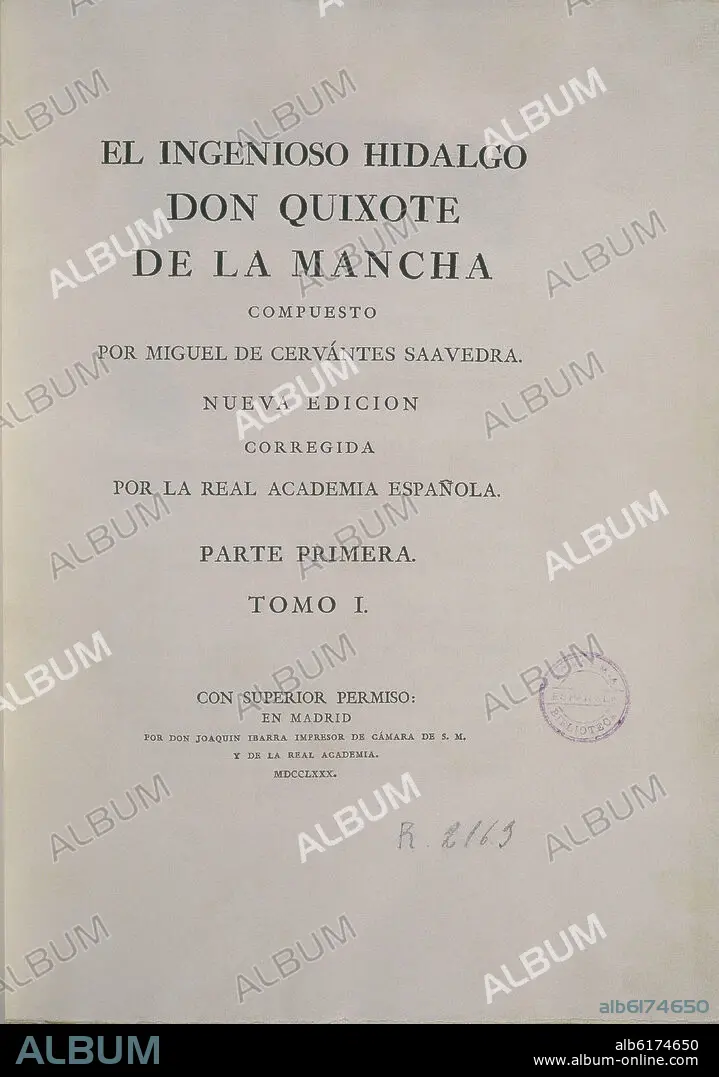 MIGUEL DE CERVANTES SAAVEDRA. PORTADA DEL INGENIOSO HIDALGO DON QUIJOTE DE LA MANCHA/ NUEVA EDICION CORREGIDA POR LA ACADEMIA/ PAR