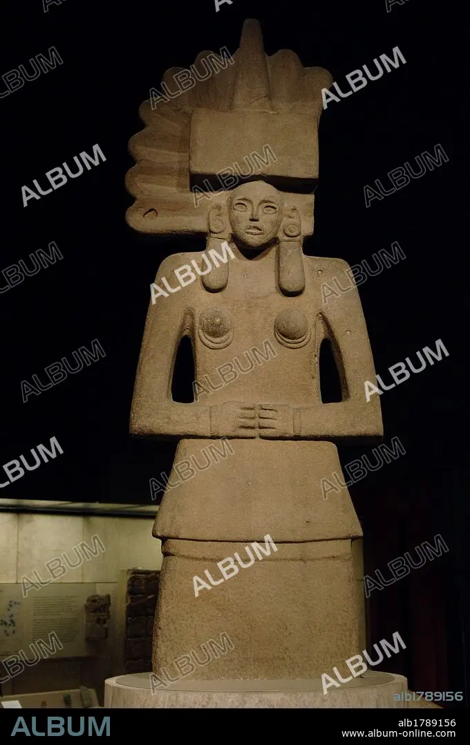 ARTE PRECOLOMBINO. HUASTECA (900-1450). Figura de piedra de la DIOSA TLAZOLTEOTL, diosa méxica de la tierra, el sexo y el nacimiento. Era la diosa que eliminaba del mundo el pecado. Museo Británico. Londres. Inglaterra. Reino Unido.