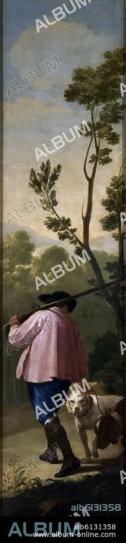 FRANCISCO DE GOYA. CAZADOR CON SUS PERROS - 1775 - O/L - 262x71 - NP 805 - CARTON PARA TAPIZ
