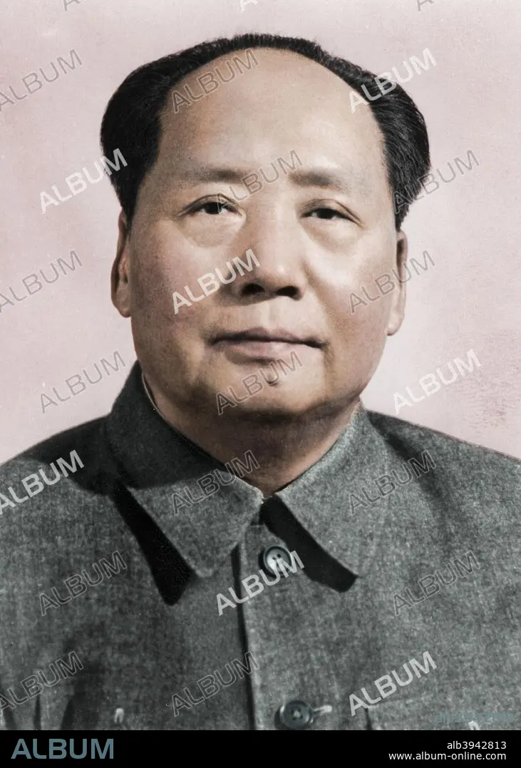 Mao Zedong, Chinese Communist revolutionary and leader, c1950s(?). The son of a peasant farmer, Mao Zedong (Mao Tse Tung) (1893-1976) led the Red Army which undertook the epic Long March and overthrew the Nationalist Chinese dictator Chiang Kai-Shek in 1949. As Chairman of the People's Republic of China and of the Chinese Communist Party he set about transforming China, but his attempt to modernise the country's industrial base (the Great Leap Forward) and the disastrous Cultural Revolution caused dramatic upheavals in Chinese society. After his death in 1976, his successors introduced social and economic initiatives that reversed many of Mao's policies. (Colorised black and white print).
