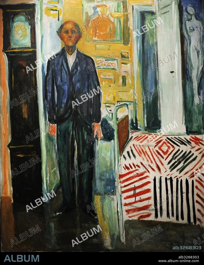 Edvard Munch (1863-1944). Pintor noruego. Autorretrato entre el reloj y la cama, 1940-1943. Museo Munch. Oslo. Noruega.