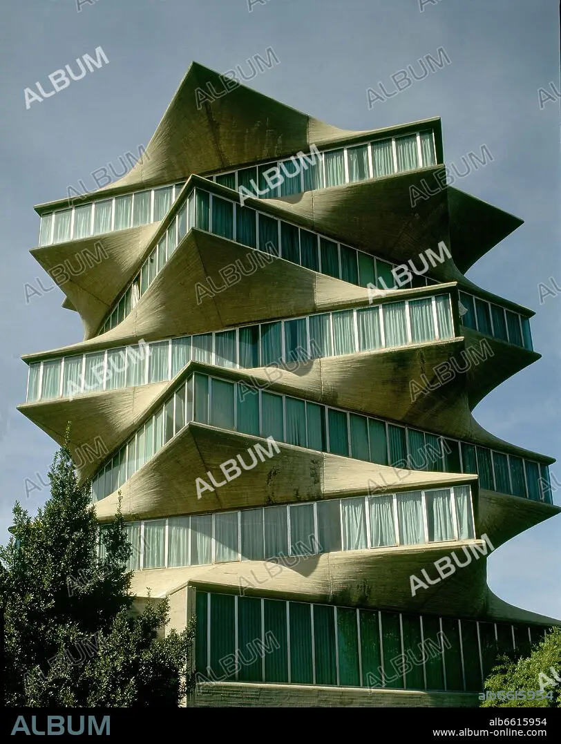 MIGUEL FISAC. EDIFICIO LA PAGODA SITUADO EN LA AVENIDA DE AMERICA SEDE DE LOS LABORATORIOS JORBA CONSTRUIDO ENTRE LOS AÑOS 1965-1970 FUE DERRUIDO EN E