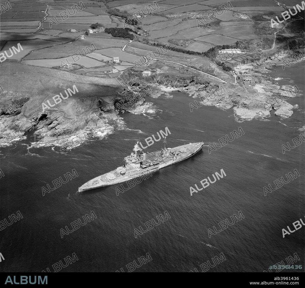 Título: HMS 'Warspite' aground in Prussia Cove, Cornwall, May 1947. Artist: Aerofilms.
