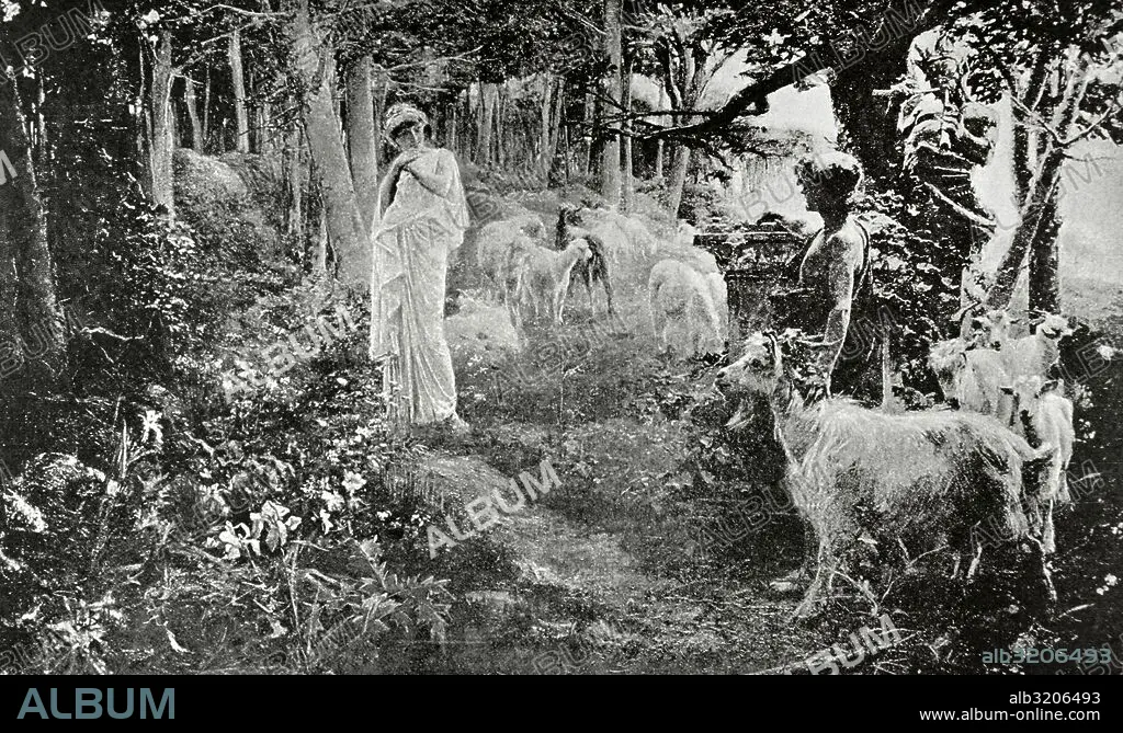 LITERATURA GRIEGA. Siglo III. LONGO (Lóggos). Escritor novelista griego. Idilio griego de "DAFNIS Y CLOE". Grabado. La Ilustración, año 1899.