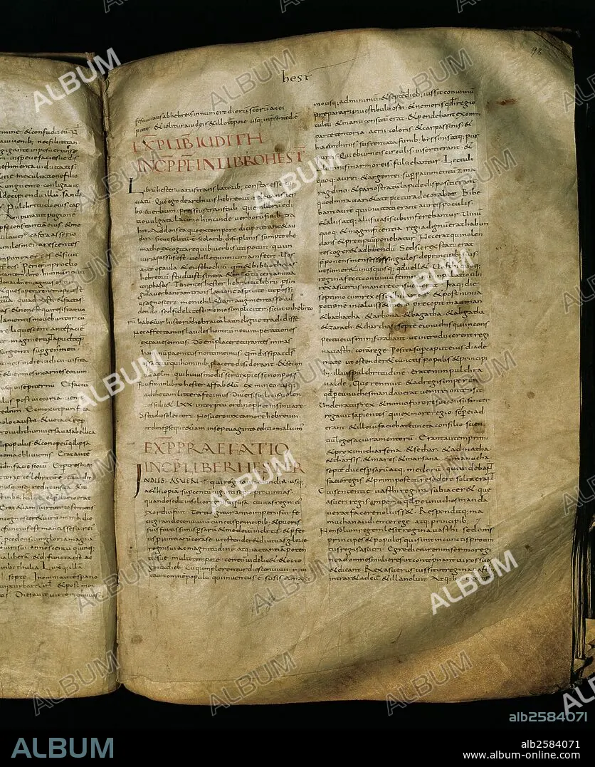 Descripción: LA BIBLIA D'URGELL, DEL SIGLO X. Pergamino. Contiene el texto de la Bíblia según la "Vulgata Llatina". Escritura carolina a dos columnas. Iniciales y rúbricas de color naranja y negro. Fechado en la segunda mitad del siglo X. Archivo Capitular de la Seu d'Urgell. Provincia de Lleida. Cataluña.