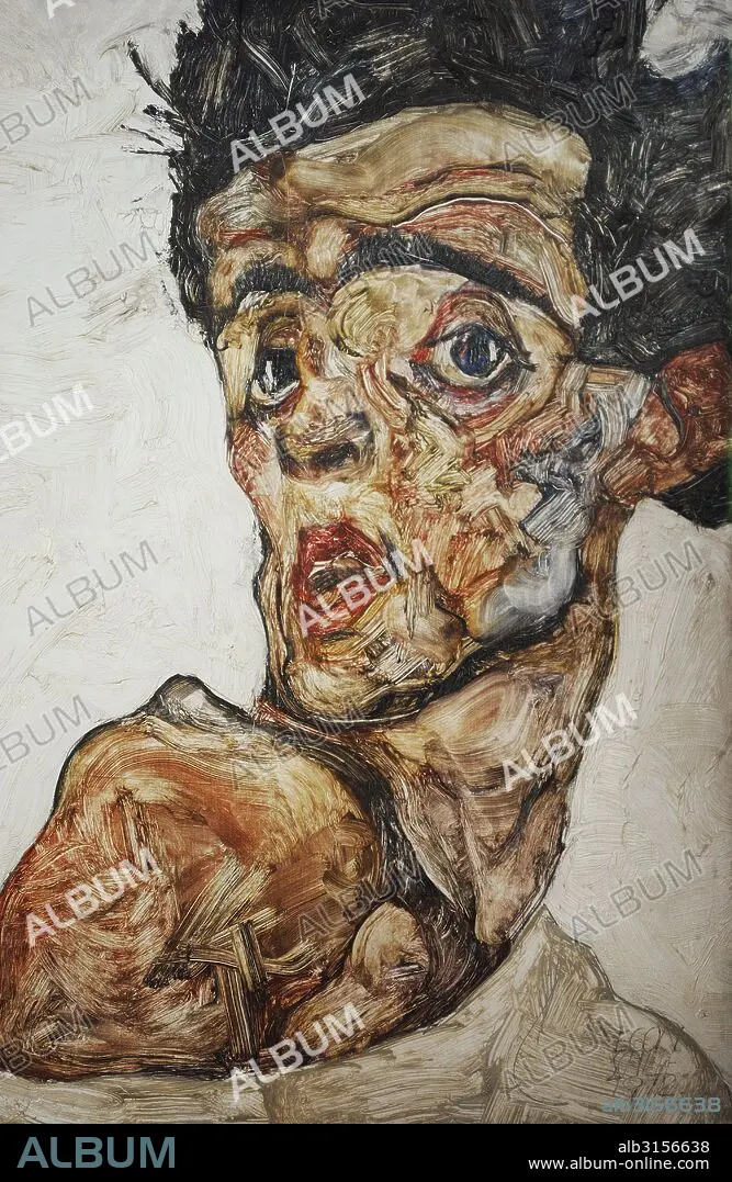 ARTE SIGLO XX. VANGUARDAS. AUSTRIA. EGON SCHIELE (Tully, 1890-Viena, 1918). Pintor expresionista austríaco. Autorretrato con hombro desnudo levantado, 1912. Leopold Museum. Viena. Austria. Detalle.