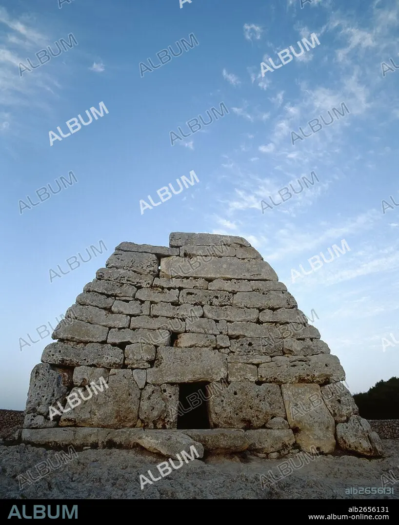 PREHISTORIA. EDAD DE LOS METALES. EDAD DEL BRONCE. "NAVETA DES TUDONS". Edificio de planta de herradura y forma de nave invertida, posiblemente de funcionalidad funeraria. CULTURA MEGALITICA. Alrededores de Ciutadella. MENORCA. Islas Baleares. España.