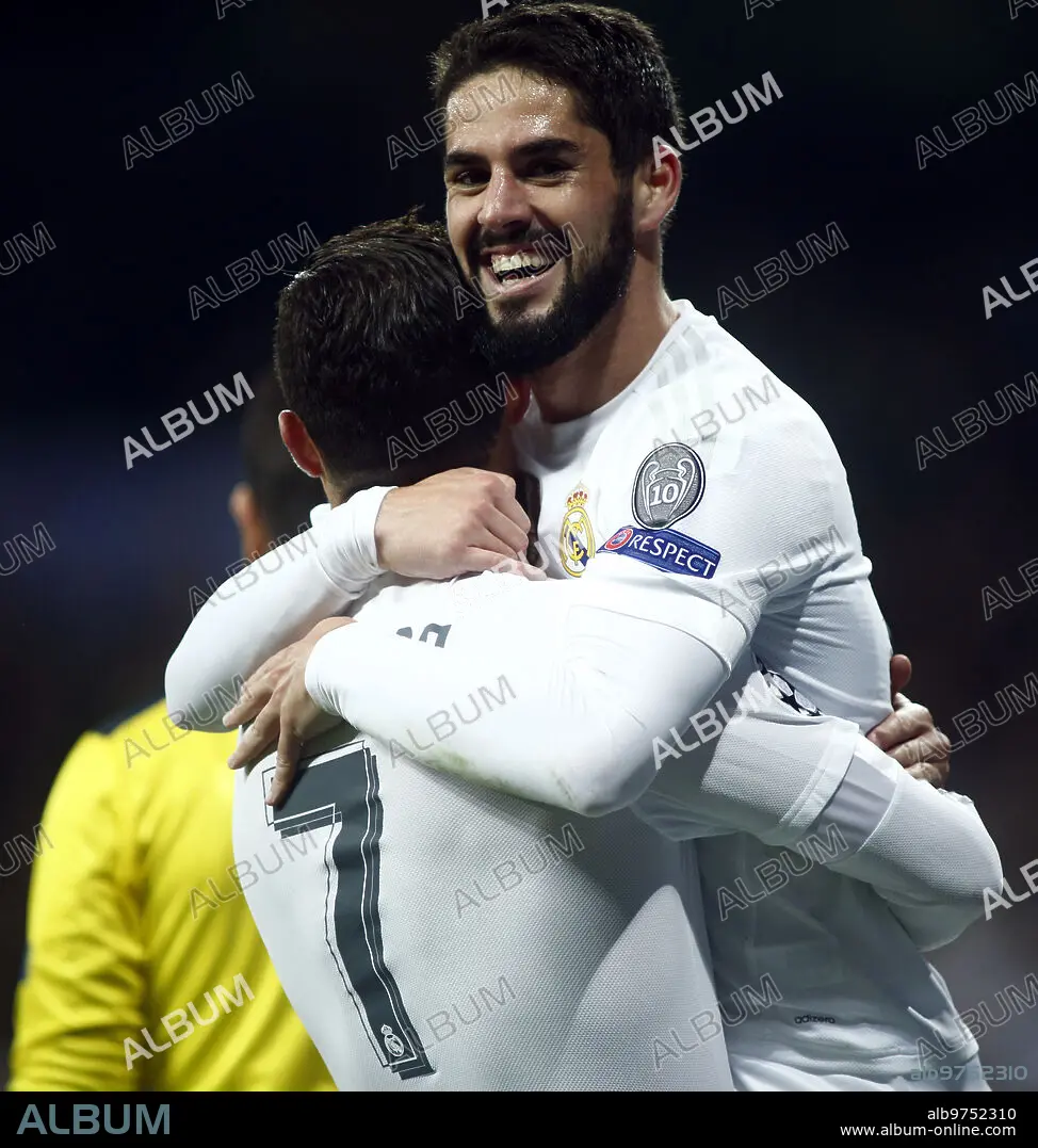 Descripción: Madrid, 08/12/2015. Partido de Liga de Campeones disputado en el estadio Santiago Bernabéu, entre el Real Madrid y el Malmö. En la imagen, Cristiano Ronaldo marca y celebra un gol. Foto: Oscar del Pozo ARCHDC