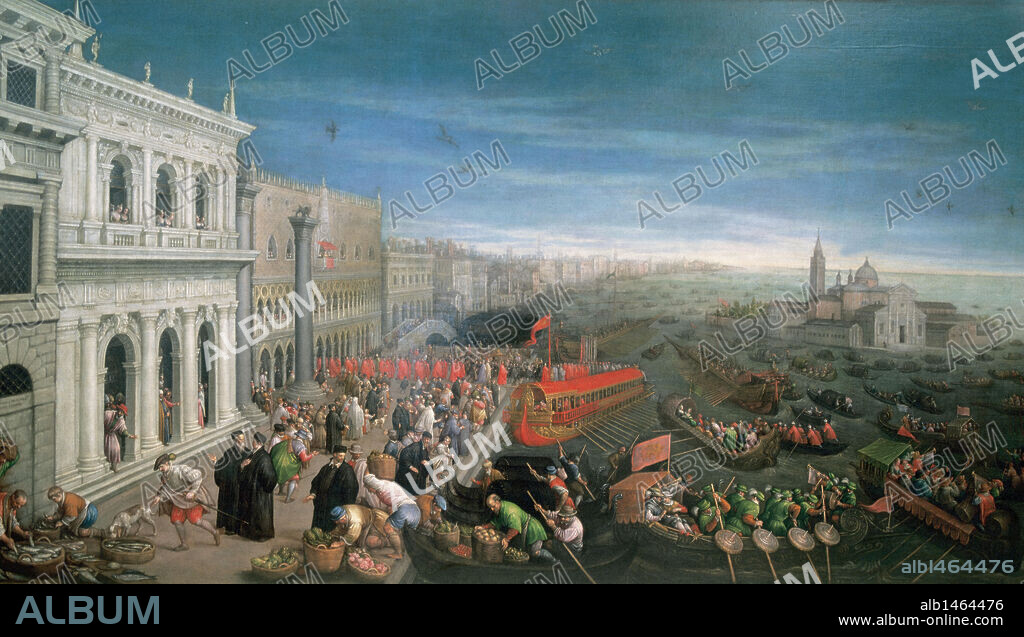 ARTE RENACIMIENTO. ITALIA. LEANDRO BASSANO (Leandro da Ponte) (1557-1622). Pintor manierista italiano, hijo de Jacopo Bassano y hermano de los también pintores Francesco y Gerolamo. S. XVI-S. XVII (S. XVI-S. XVII). "LA RIVA DEGLI SCHIAVONI EN VENECIA". Real Academia de Bellas Artes de San Fernando. Madrid.