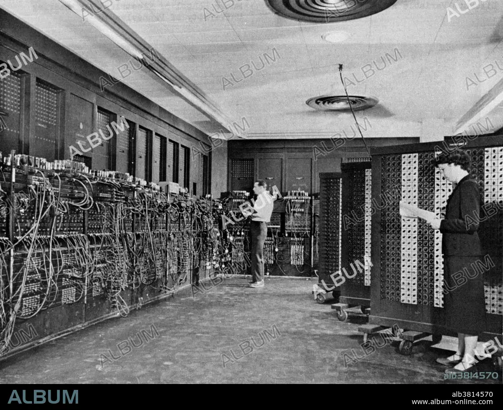 Glen Beck (background) and Betty Snyder (foreground) program the ENIAC (Electronic Numerical Integrator And Computer) at the US Army's Ballistics Research Laboratory. The ENIAC was the first general-purpose electronic computer, designed and constructed during World War II by the US Army.