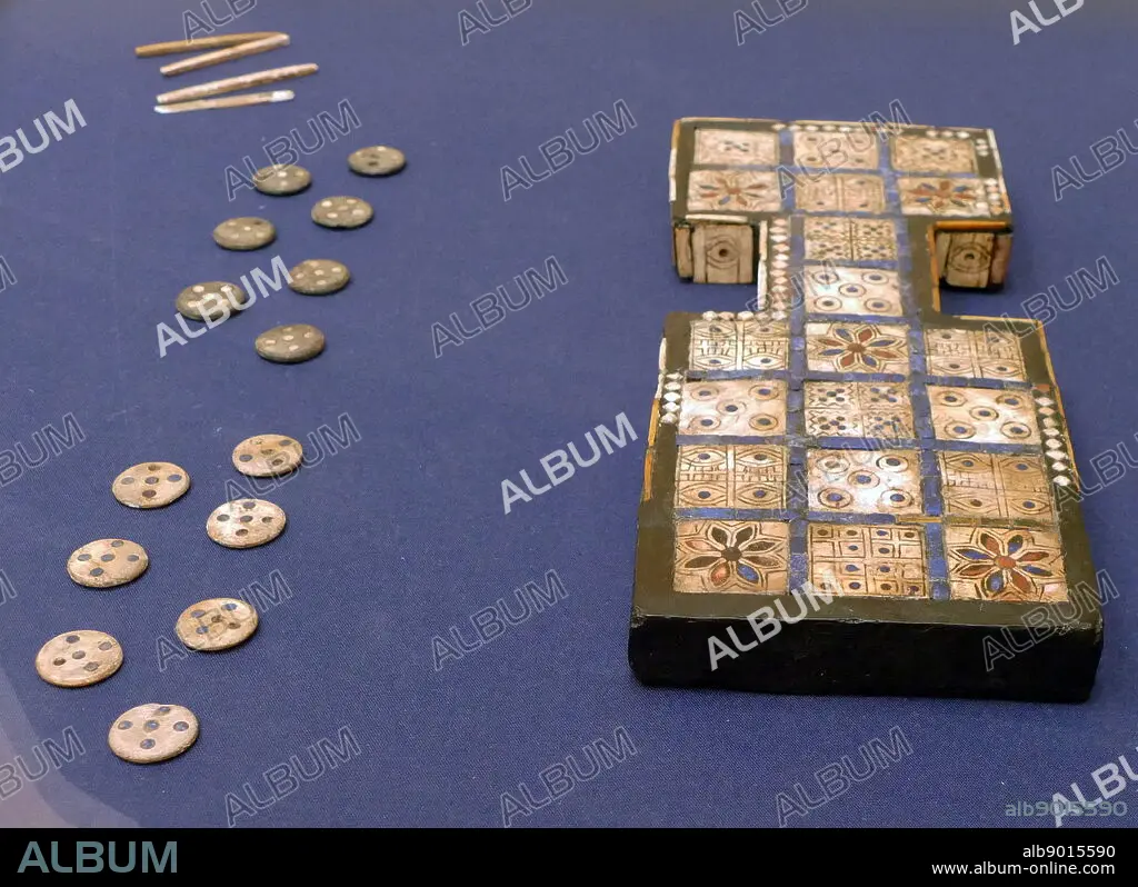 Traducción automática: El juego real de Ur, o juego de las veinte casillas, es un juego de la antigua Mesopotamia. Es conocido por dos mesetas, descubiertas en las tumbas reales de Ur por Leonard Woolley en la década de 1920. fechado alrededor del 2600 a.C. antes de Cristo