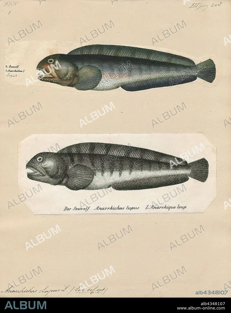 Anarrhichas lupus, Print, The Atlantic wolffish (Anarhichas lupus), also known as the seawolf, Atlantic catfish, ocean catfish, devil fish, wolf eel (the common name for its Pacific relative), woof or sea cat, is a marine fish of the wolffish family Anarhichadidae. The numbers of the Atlantic wolffish in US waters are rapidly being depleted, most likely due to overfishing and bycatch, and is currently a Species of Concern according to the U.S. National Oceanic and Atmospheric Administration's National Marine Fisheries Service., 1700-1880.
