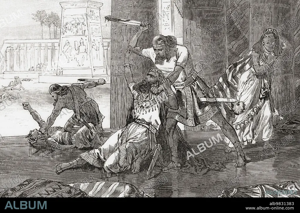 Massacre of the Hivites by Simeon and Levi to avenge the rape of their sister Dinah by Shechem, son of Hamor the Hivite. From Cassell's Universal History, published 1888.