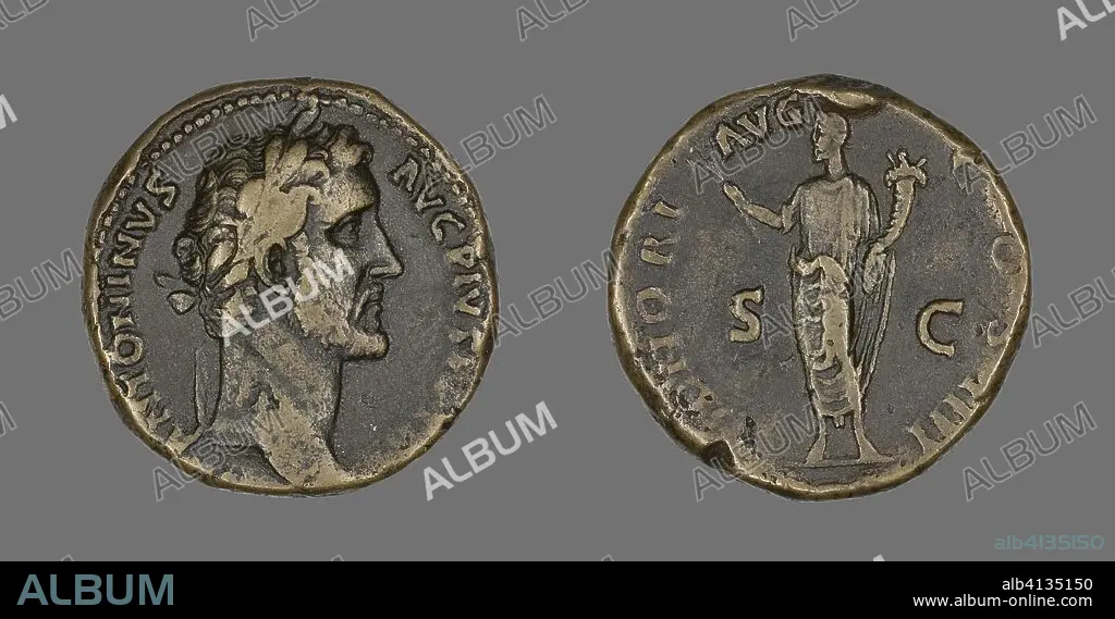Sestertius (Coin) Portraying Emperor Antoninus Pius. Roman, minted in Rome. Date: 145 AD-156 AD. Dimensions: Diam. 3.1 cm; 27.80 g. Bronze. Origin: Roman Empire.