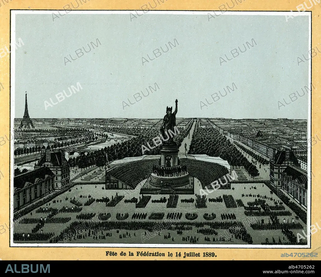 Fete de la Federation le 14 juillet 1889. Illustration de Emile BIN (1825-1897) pour Musee historique Les grandes scenes de l'Histoire de France de puis 1789 jusqu'a nos jours (Diorama des Buttes-Chaumont en 1889). Credit : IM/Kharbine-Tapabor.
