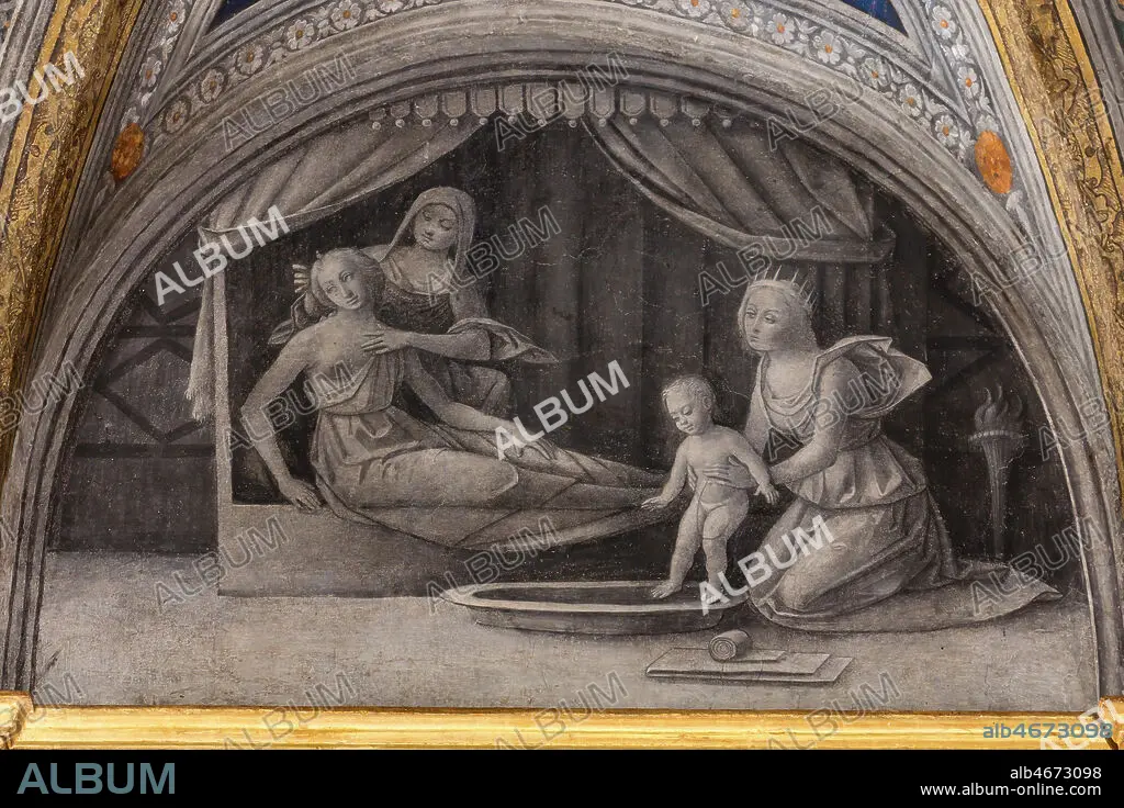 Ferrara, Palazzo Costabili or Palazzo di Ludovico il Moro (today it is the seat of the National Archaeological of Spina), Aula Costabiliana o Hall of the Treasure, vault, XVI century frescoes by Benvenuto Tisi, known as il Garofalo: detail of one of the lunettes that represent the myth of Eros and Anteros, a literary work by the humanist Celio Calcagnini, a close friend of Costabili, who chose his work to inspire Garofalo and his collaborators.