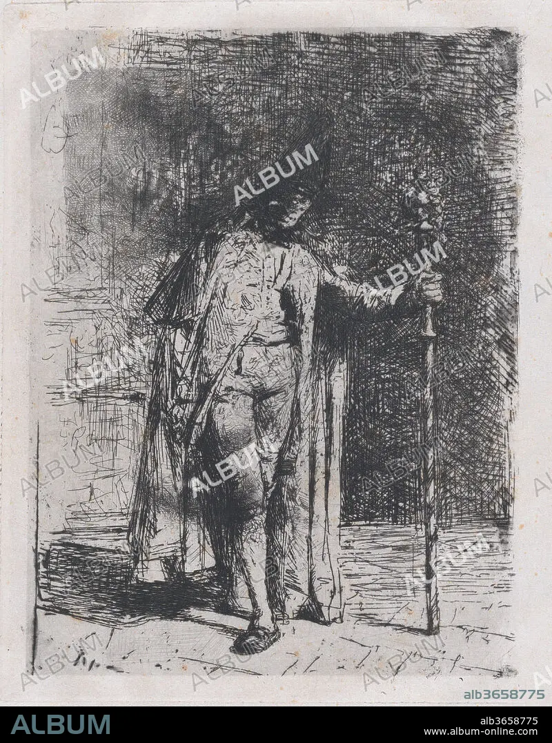 Master of ceremonies, a man standing facing the viewer holding a staff in his left hand. Artist: Mariano Fortuny, 1838-1874 (Spanish, 1838-1874). Dimensions: Sheet: 12 11/16 × 9 1/4 in. (32.2 × 23.5 cm)