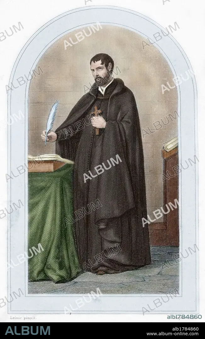 SAN IGNACIO DE LOYOLA (1491-1556). Fundador de la Compañía de Jesús. Siglo XVI. Grabado coloreado del siglo XIX.