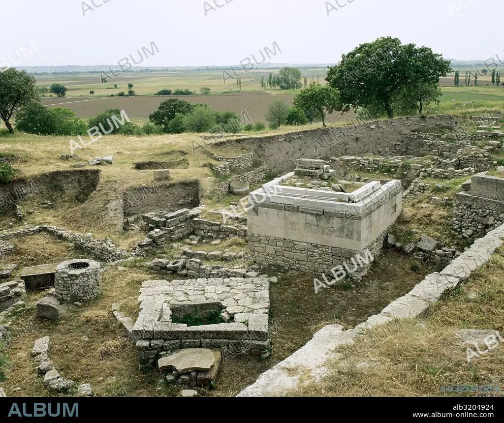 Descripción: TROYA. Antigua ciudad de Asia Menor, habitada desde la Primera Edad del Bronce hasta el Imperio Romano. Estrato TROYA IX (siglos I a. C. -IV d. C.). Vista del SANTUARIO. Turquía.
