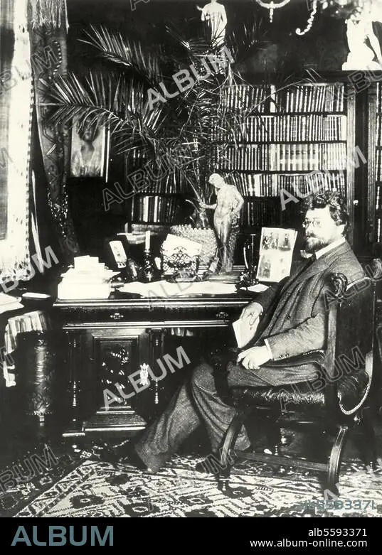 Ganghofer, Ludwig Writer Kaufbeuren 7.7.1855 - Tegernsee 24.7.1920.- - Ganghofer sitting at his desk.- Photo c. 1900 (Otto Haeckel).