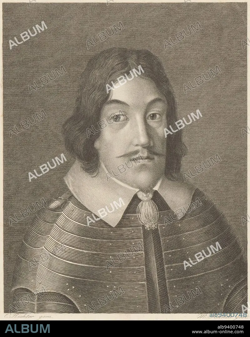 Portrait of Bernhard, Duke of Saxe-Weimar, Moritz Steinla, after Christian Richter (I), 1801 - 1858, print maker: Moritz Steinla, (mentioned on object), after: Christian Richter (I), (mentioned on object), Germany, 1801 - 1858, paper, etching, engraving, h 258 mm - w 190 mm.