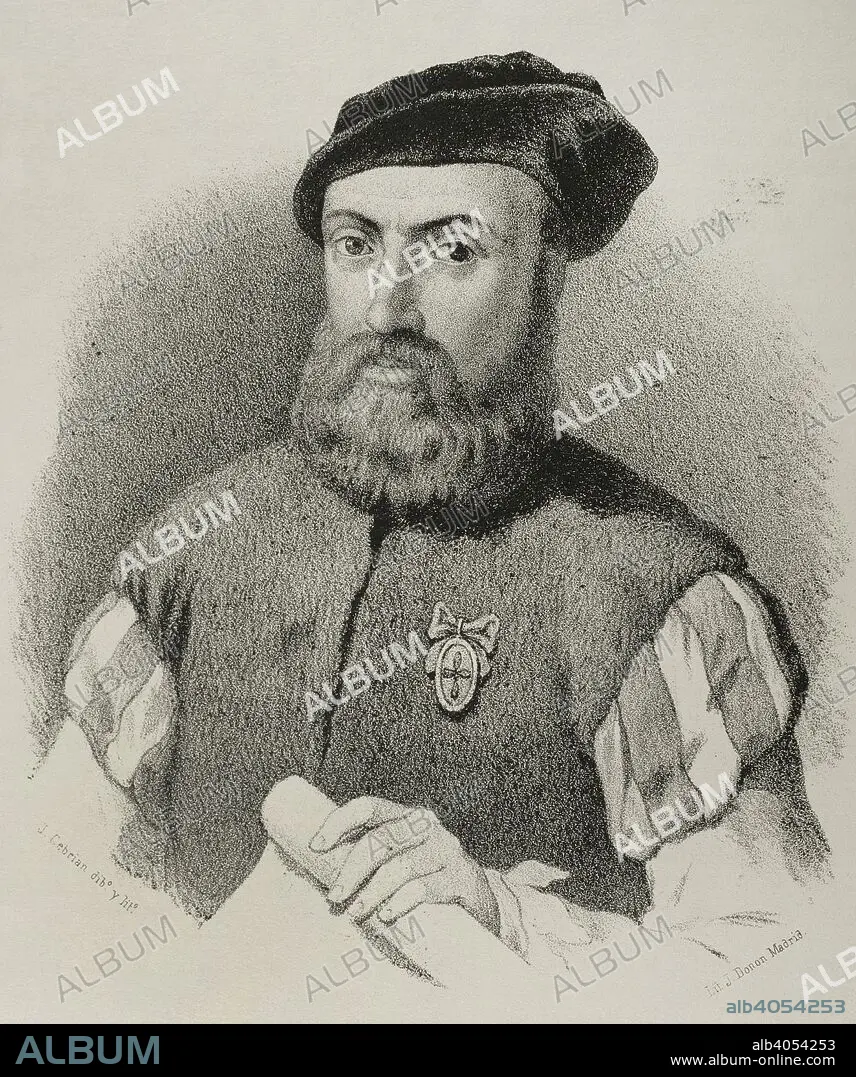 Descripción: Fernando de Magallanes (1480-1521). Militar, explorador, marino y navegante portugués de linaje noble. Nombrado por la Monarquía Hispánica adelantado y capitán general de la Armada para el descubrimiento de la especería. Dibujo por J. Cebrián. Retrato. Litografía. Crónica General de España, Historia Ilustrada y Descriptiva de sus Provincias. Andalucía, 1867. Biblioteca Histórico Militar de Barcelona, Cataluña, España.