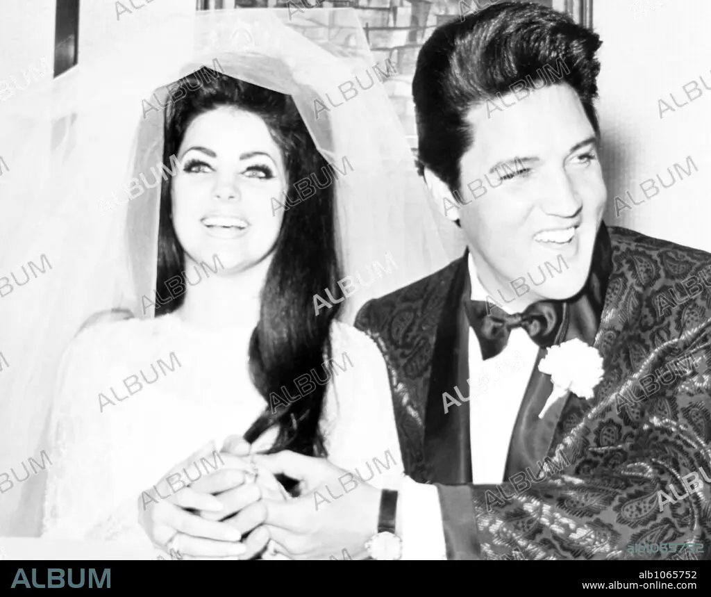 El cantante norteamericano Elvis Presley y Priscilla Presley el día de su boda en 1967.