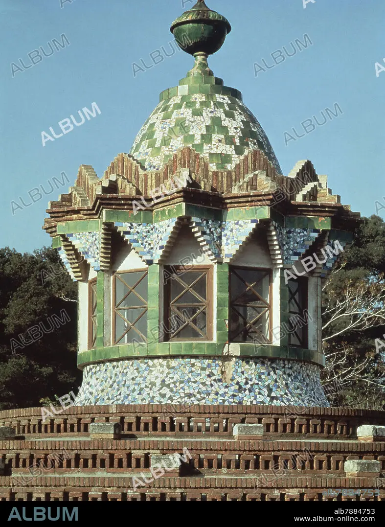 ANTONI GAUDÍ. CUPULA CON TAMBOR DECORADA CON TRENCADIS O AZULEJO TROCEADO- 1884-87