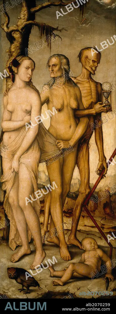Título: 'The Ages of Man and Death', 1541-1544, German School, Oil on panel, 151 cm x 61 cm