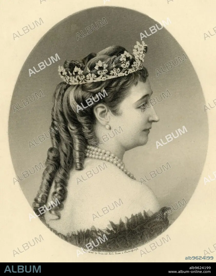 FRANCIS HOLL. 'Eugenie, Empress Regent of France', c1872. Portrait of Spanish-born Empress Eugenie (1826-1920). She became Empress Consort after she married Emperor Napoleon III of France in 1853. From "The Franco-Prussian War: its causes, incidents and consequences", Volume II, by Captain H M Hozier. [William Mackenzie, London, 1872].