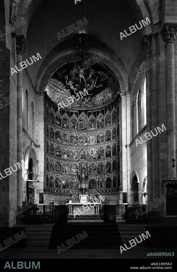 NICOLÒ DELLI. RETABLO DEL ALTAR MAYOR DE LA CATEDRAL DE SALAMANCA - SIGLO XV - GOTICO INTERNACIONAL FOTOGRAFIA EN BLANCO Y NEGRO - AÑOS 60