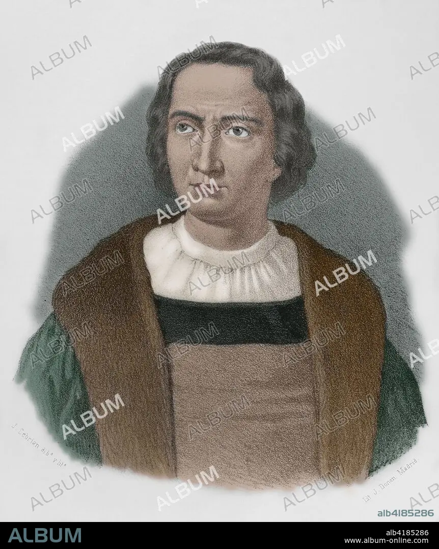 Descripción: Cristóbal Colón (1451-1506). Navegante, almirante, virrey y gobernador general de las Indias Occidentales al servicio de la Corona de Castilla. Descubridor de América en 1492. Retrato. Dibujo por Cebrián. Litografía. Coloreada. Crónica General de España, Historia Ilustrada y Descriptiva de sus Provincias. Andalucía, 1867.