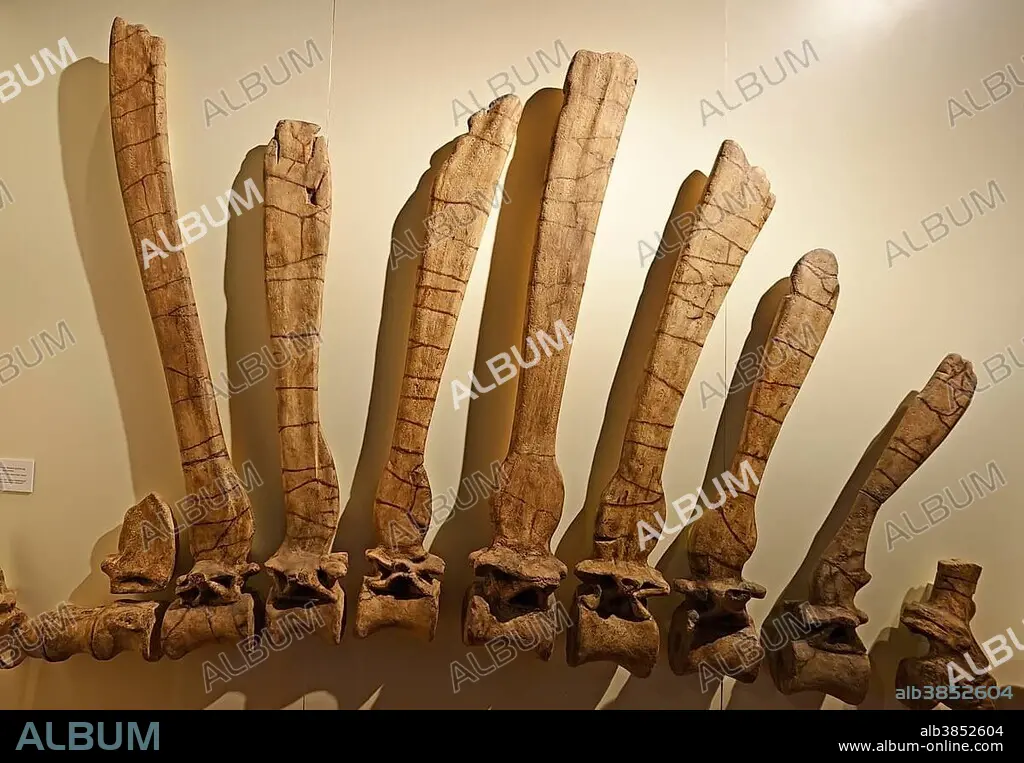Part of the spine and back bones of the biggest carnivorous dinosaur (Spinosaurus aegyptiacus), Naturkundemuseum, Natural history museum, Berlin, Germany