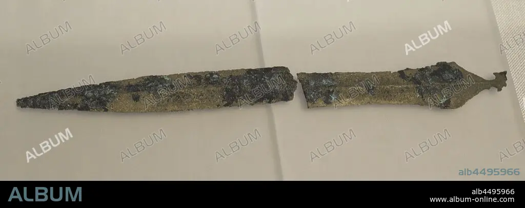 Descripción: Espada o puñal. Hacia 1000 a. C. Bronce. Procedente de Ponte da Pasaxe (provincia de La Coruña). Museo Arqueológico e Histórico (Castillo de San Antón). La Coruña. Galicia. España.