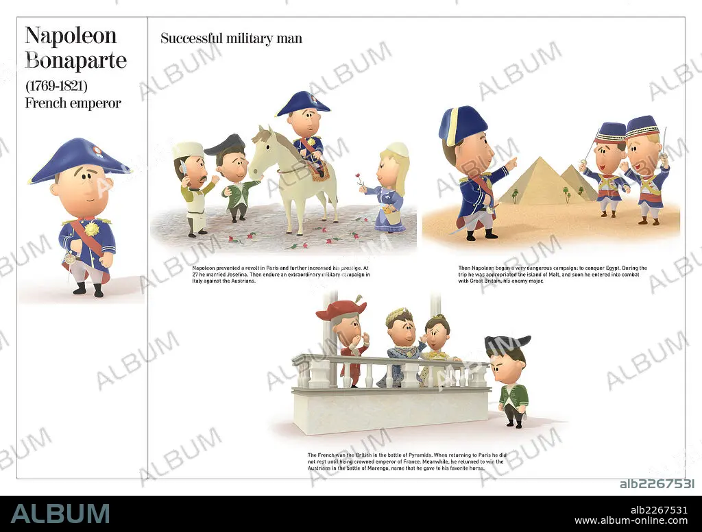 Ilustraciones de la biografía de Napoleón Bonaparte, el emperador de los franceses, (1769-1821).