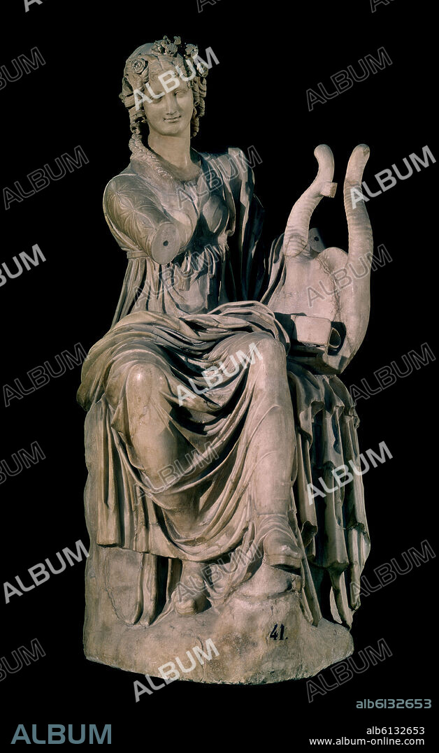 PRAXITELES (escuela). ESCULTURA DE MUSA TERPSICORE-MARMOL BLANCO DE GRANO FINO LAVADO-COPIA S II DCV