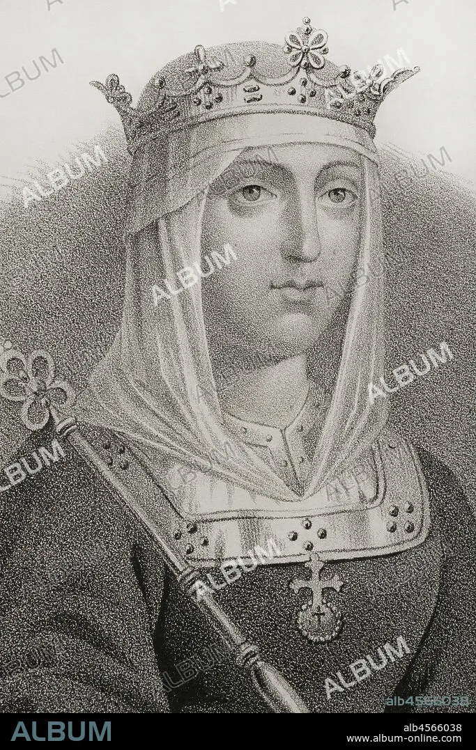 Isabel I de Castilla (1451-1504). Reina de Castilla (1474-1504). Esposa de Fernando I de Aragón. Dibujo por Llanta. Detalle. Litografía. Crónica General de España. Historia Ilustrada y Descriptiva de sus Provincias. Aragón, 1866. Biblioteca Histórico Militar de Barcelona, Cataluña, España.