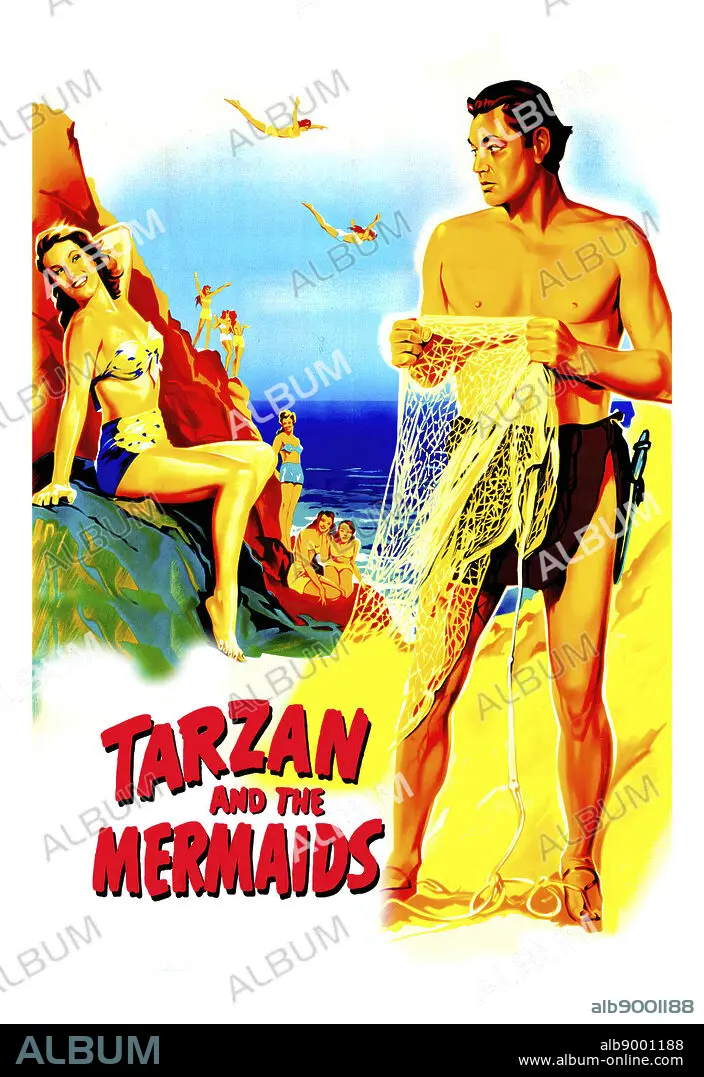 JOHNNY WEISSMULLER en TARZÁN Y LAS SIRENAS, 1948 (TARZAN AND THE MERMAIDS), dirigida por ROBERT FLOREY. Copyright RKO.