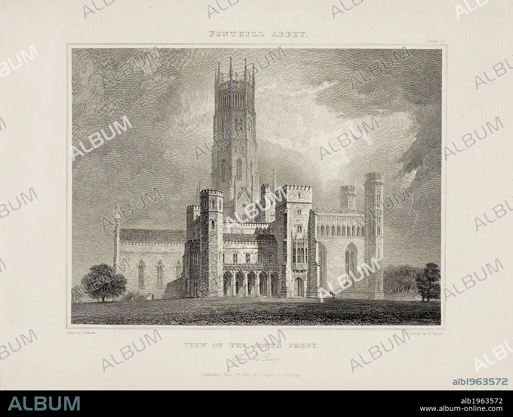 Illustration of Fonthill Abbey in Wiltshire. Engraving. 1823. . Delineations of Fonthill and its Abbey. By J. Rutter. London. J. Rutter. Delineations of Fonthill and its Abbey. By J. Rutter. Fonthill Abbey, Wiltshire. 1823. Source: 191.e.6 opposite 71.
