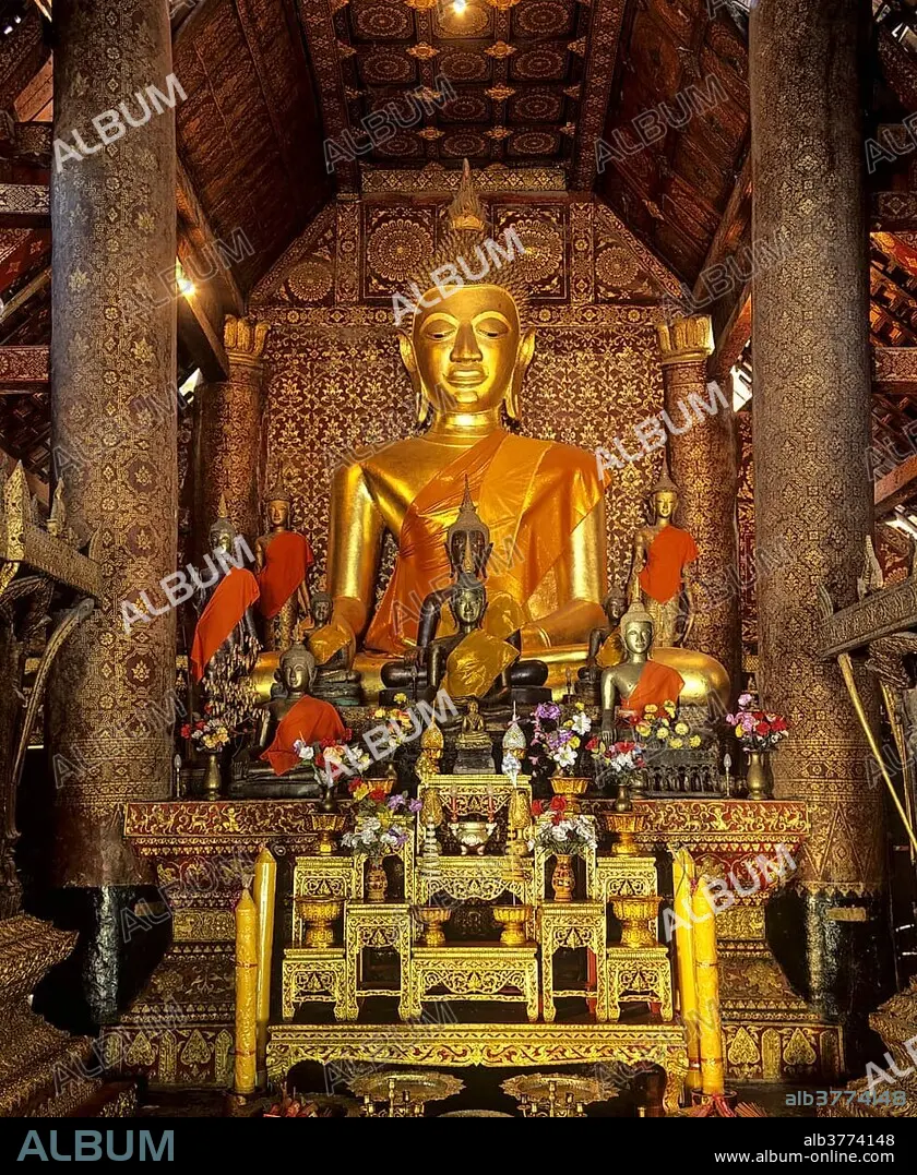 Buddha statue in Wat Xieng Tong or Vat Xienthong, Thong, Luang Prabang, Luang Prabang Province, Laos, Asia.