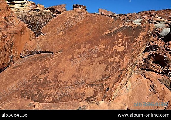 Rock carvings of the San people, Damaraland, Kunene Region, Namibia, Africa.